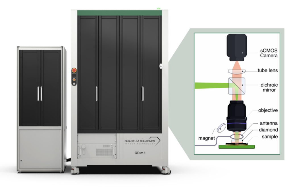 Mnichovská společnost QuantumDiamonds nasadila svůj systém QD m.1 v americké laboratoři Eurofins EAG Laboratories v Sunnyvale v Kalifornii. Jde o první instalaci v USA. Systém využívá kvantovou diamantovou mikroskopii (QDM), konkrétně dusík-vakantní (NV) centra v diamantu, k detekci magnetických polí generovaných tokem elektrického proudu v polovodičových čipech. Díky tomu dokáže nedestruktivně lokalizovat elektrické defekty (otevřené spoje) s rozlišením na úrovni mikrometrů a analýzu zvládne v řádu minut. Technologie cílí na analýzu kvality čipů vyráběných v sub-5nm procesních uzlech, komplexní 3D integrované obvody a výkonové polovodiče na bázi GaN a SiC, přičemž poskytuje vizuální mapu proudových obvodů pohřbených uvnitř 2.5D/3D pouzder. Podle QuantumDiamonds s platformou již pracuje devět z deseti největších světových výrobců čipů.