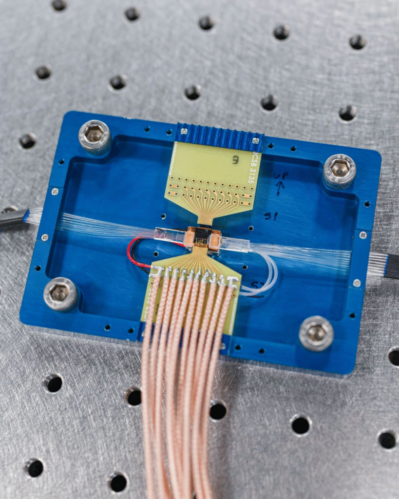 Společnost Cisco představila prototyp kvantového síťového čipu pro generování provázaných fotonů a otevřela nové výzkumné centrum Cisco Quantum Labs v Santa Monice. Tento fotonický integrovaný čip, vyvinutý ve spolupráci s University of California, Santa Barbara, generuje přes milion provázaných párů fotonů za sekundu na kanál (až 200 milionů párů za sekundu celkově). Čip dosahuje fidelity až 99 %, spotřebovává méně než 1 mW energie a funguje při pokojové teplotě na standardních telekomunikačních vlnových délkách, což umožňuje jeho integraci do stávající optické infrastruktury.